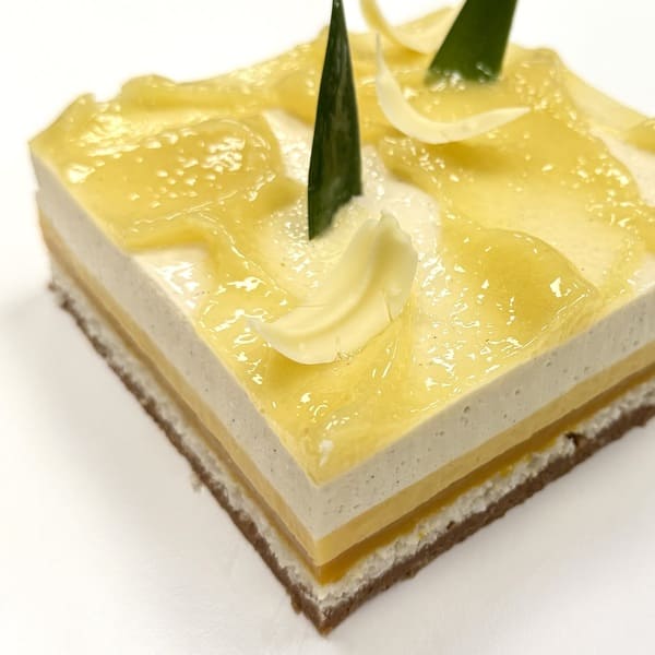 Biscuit coco, confit de mangue, crème onctueuse à la passion